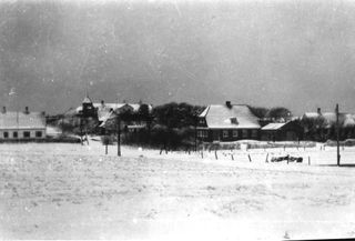 Stendyssevej 1, set mod nord. 1925. I baggrunden; Horne Højskole, i dag: Horne Efterskole.